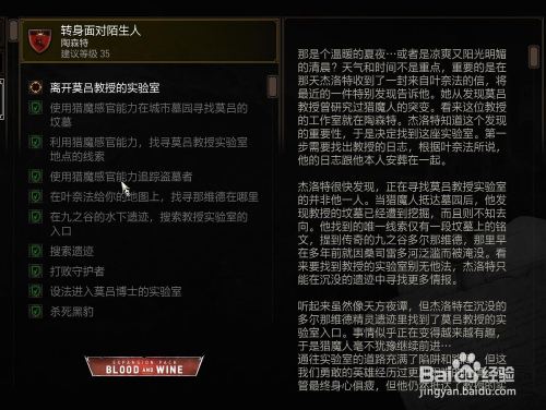 调查尝试室找到两个水晶放入千里眼中可以不雅看尝试记实 领会尝试可以让猎魔人突变(尝试是传授为了让当作为猎魔人的儿子恢复正常才进行的 成果反而增强的猎魔能力)