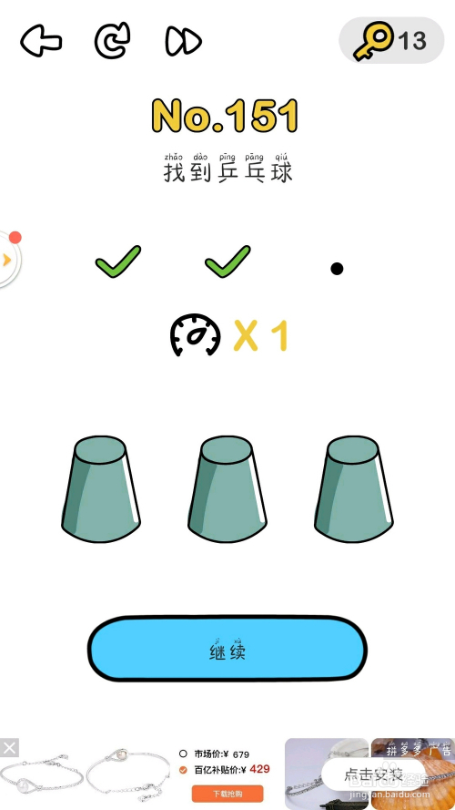 最后找对第三次乒乓球即可过关。