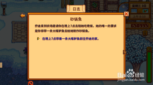 当乔迪对玩家的好感度达到四颗心时,即可触发砂锅鱼事务。