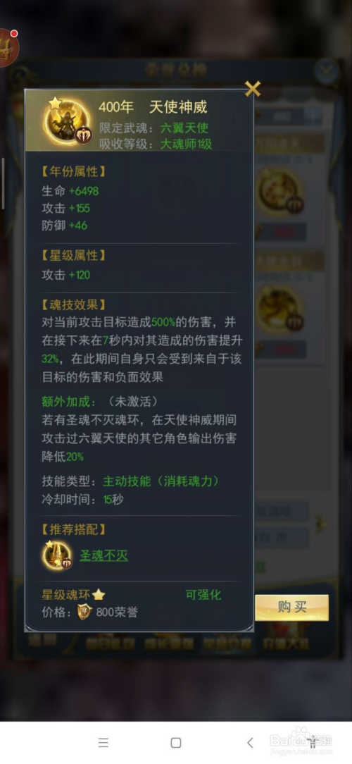 如有圣魂不灭魂环,在天使神威时代进犯过六冀天使的其它脚色输出危险降低20%