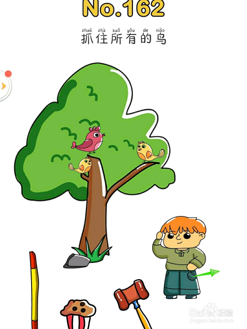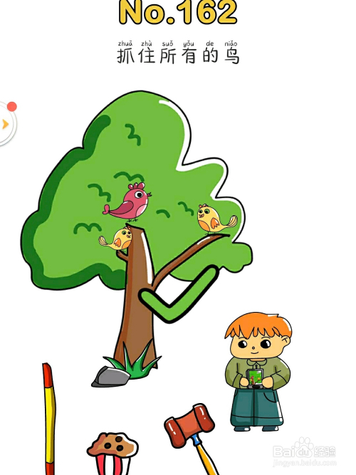 4.最后小男孩用手机拍下所有的鸟即可过关。