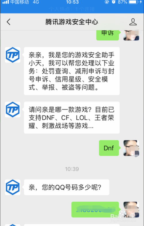 也可以直接在对话框中输入“申诉”,主动答复会扣问您是哪一条目游戏,您继续答复“DNF”,这时辰会问您qq号码几多,继续录入,系统则会对应的显示您游戏的运行状况,需要申诉的话,就在对话框中输入您想说的话,点击提交即可。系统会在1-3天内反馈您的问题。