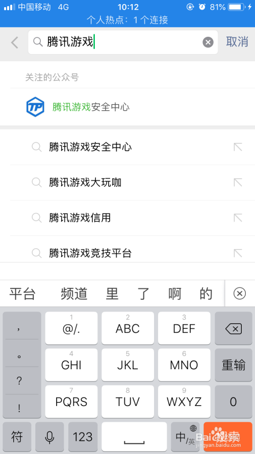 选择此中的“公家号”在里面输入“腾讯游戏”进行搜刮。