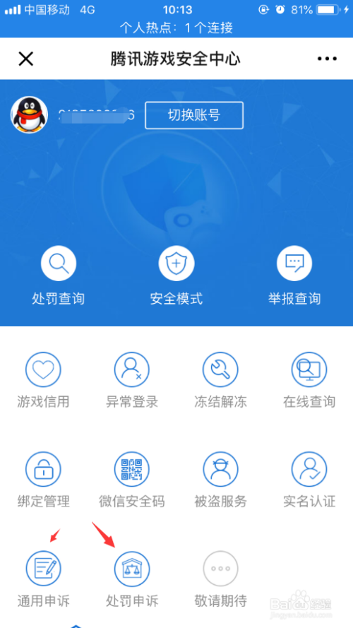 然后从头返回本家儿页面,点击下方的“自助办事”,选择“通用申诉”或者“惩罚申诉”。