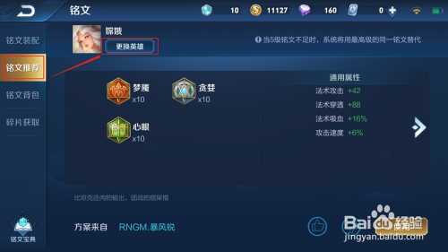 第二步:找到铭文保举,点击改换英雄,如图