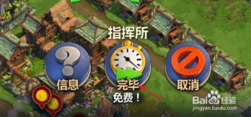 这个时辰我们可以看见在批示所下方就呈现了一个时钟状的标记,我们可以看见我们建造批示所可以或许免费建造,我们点击批示所这个时钟状的标记。