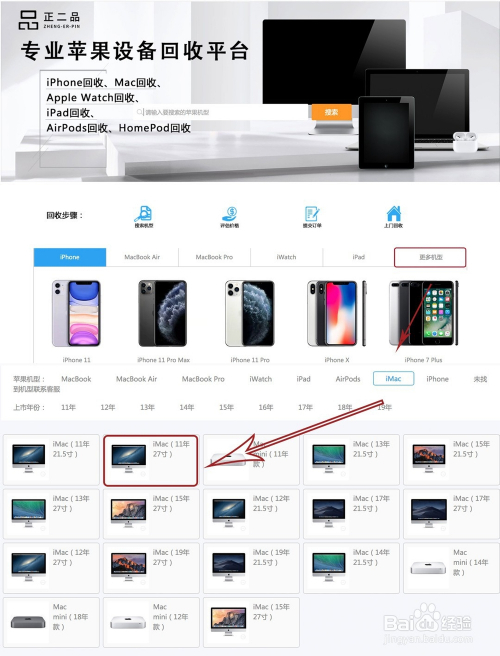 百度搜刮正二品网,进入平台发现首页没有iMac机型,是以在更多机型>imac>11年条目iMac。