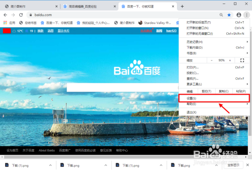 进入谷歌游览器本家儿界面后,点击界面右上角菜单键,然后点击“设置”。