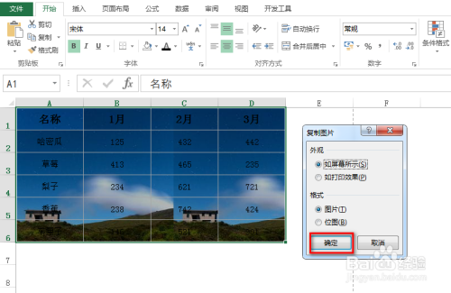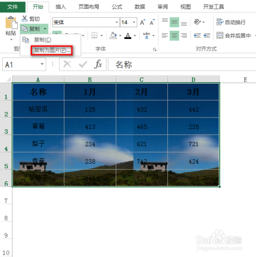 首先,选中该数据区域,在“起头”选项卡下找到并点击“复制”右侧的小三角,在呈现的下拉菜单中,点击“复制为图片”,具体如下图所示: