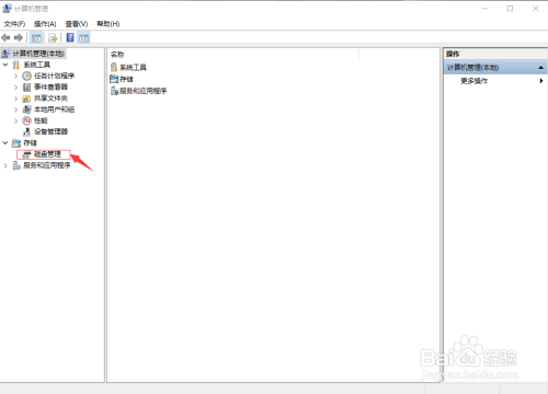 进入“计较机办理”后找到并单击“磁盘办理”。