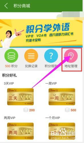 想要兑换VIP,则先要完美地址信息。点击【地址办理】。