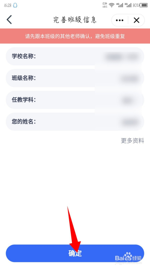 填写完当作后,点击底部简直定,建立班级。如图所示