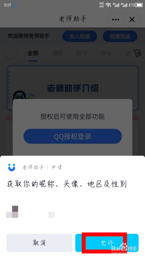 在底部弹出的申请窗口中,点击许可登录,就可以利用教员助手了。如图所示