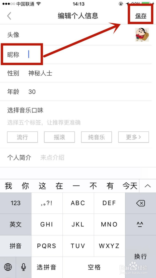 3.输入昵称后点击右上角保留,即可当作功操作。