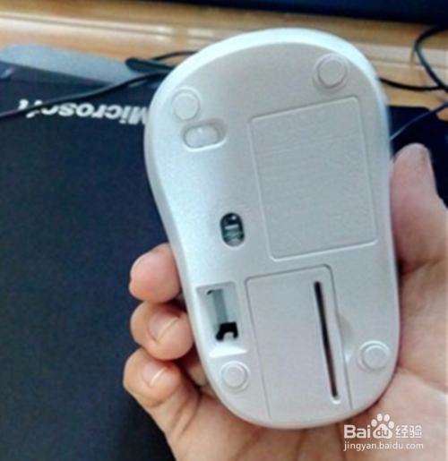 安装好接收器后,再将无线鼠标的开关打开。一般开关在鼠标的底部,上面写着 ON/OFF,确认是处在打开状况,也就是ON的一面。