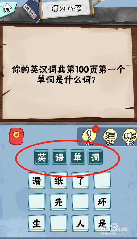 在脑子急转弯达人Lv4科学怪人的第206关内,提问您的英汉辞书的第100页的第一个单词是什么词。