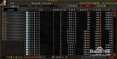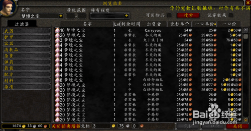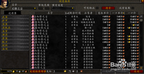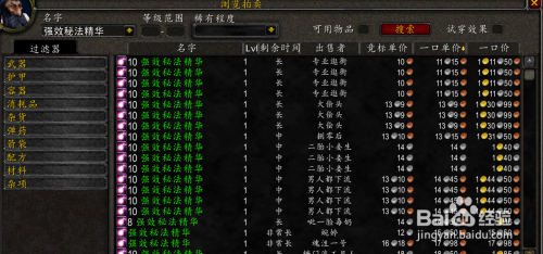 下面是拍卖行的一些价钱。奇异之尘70银一组(合计14金),魂灵之尘4金一组(合计5金),幻象之尘 40银一组(合计约4金),幻影之尘一组1金20银(合计约10金),强效秘法精髓一组1金10银摆布(合计3金摆布)。小块微光碎片2金一组(合计2金)其他附魔棒的材料和图纸合计共需要15金摆布。进修技术约15金摆布。合计100金内搞定(奥金棒因为太贵,所以没有列在冲级的行列)。