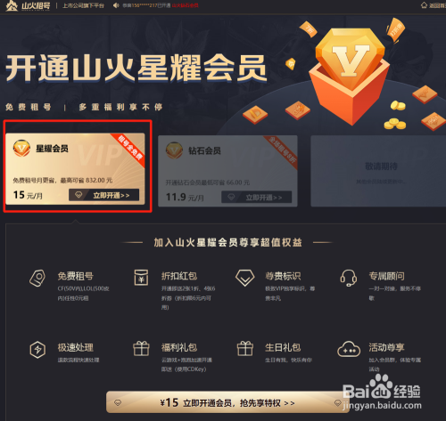- 这个会员此刻貌似只针对穿越前方和英雄联盟,穿越前方是50V以下,英雄联盟是500皮肤以内的账号。