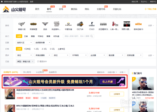 找到租号平台,点开这个会员开通banner图