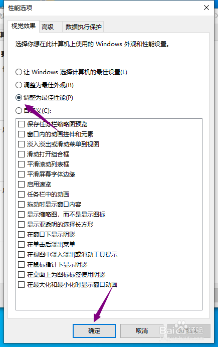 7、点击选择调整为最佳机能,点击确定即可。