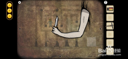 过关后会呈现一道裂痕,用稿把裂痕凿开,可以看到一条手臂。
