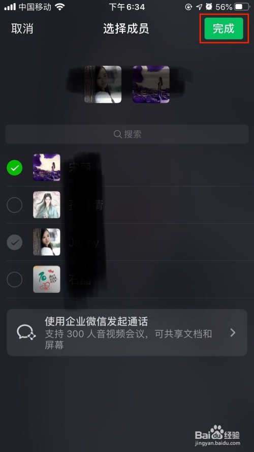 勾选需要加入本次会议的群当作员,点击“起头”按钮,期待老友插手会议。