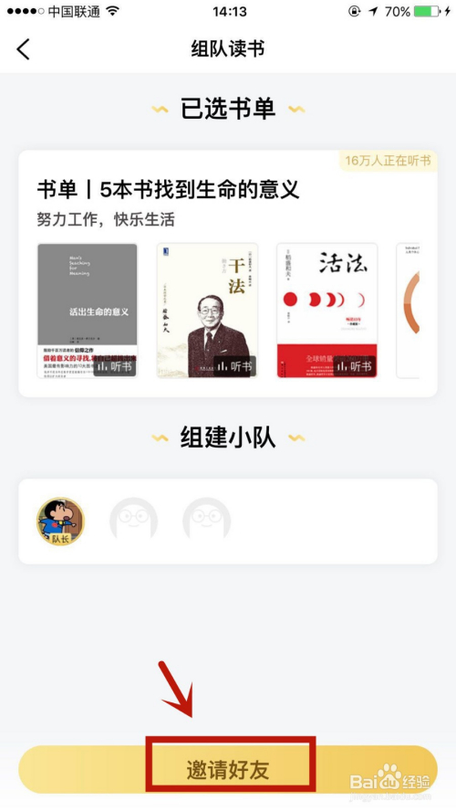 在我的页面,点击进入组队念书选项。