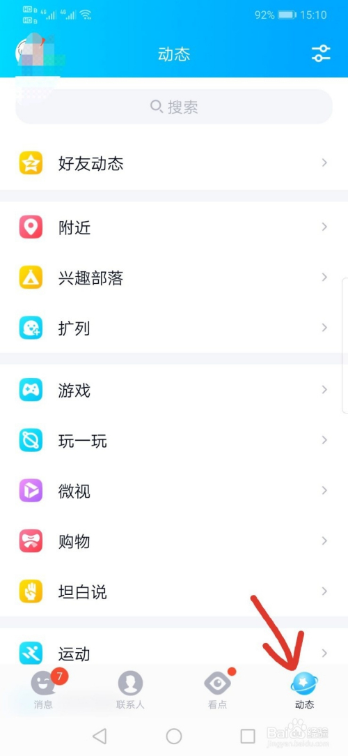点击右下角的动态。