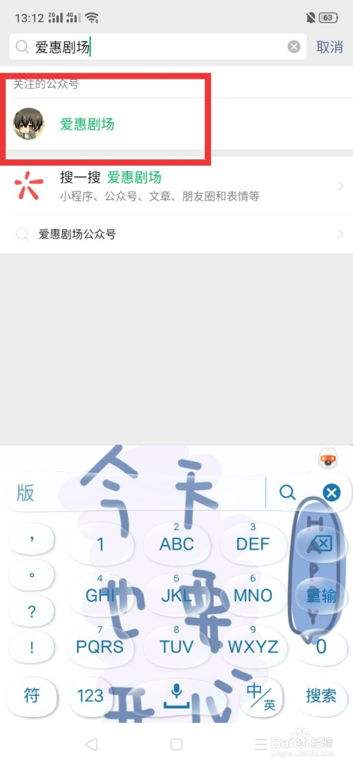 在搜刮栏中搜刮爱惠剧场公家号,进入。