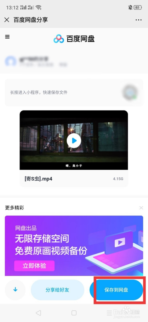 4.进入它的百度网盘,点击保留即可。