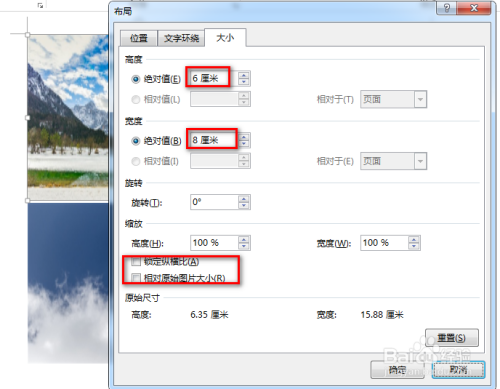接着,在呈现的对话框中,别离设置高度与宽度,最后点击“确定”,具体如图所示: