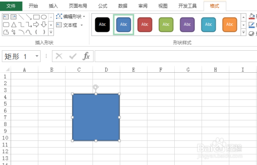 在“插入”选项卡下找到并点击“外形”,接着选择矩形,具体如图所示: