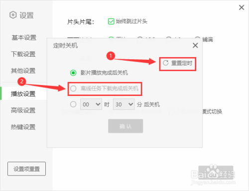 “离线使命下载完当作后关机”前的圆圈内有一个实心点后,点击“确认”即可完当作设置。见下图