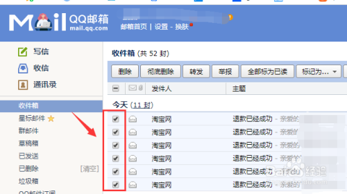 第四步,进入收件箱界面后,勾选需要标识表记标帜的邮件。