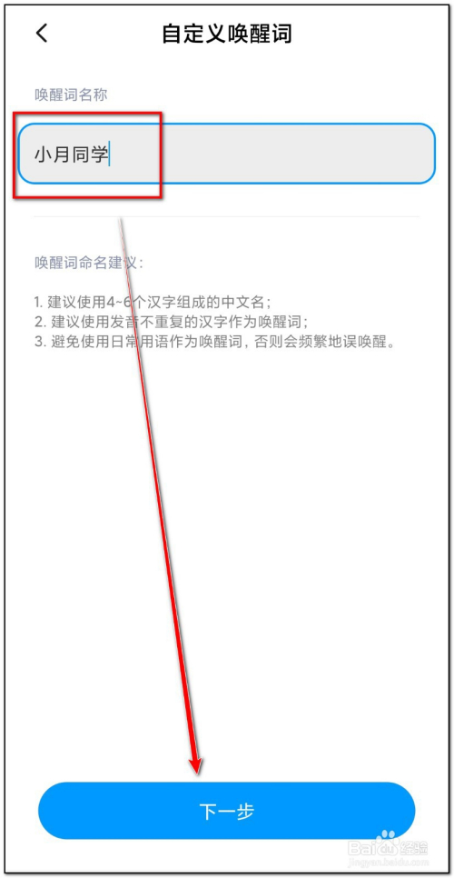 输入叫醒词点击“下一步”