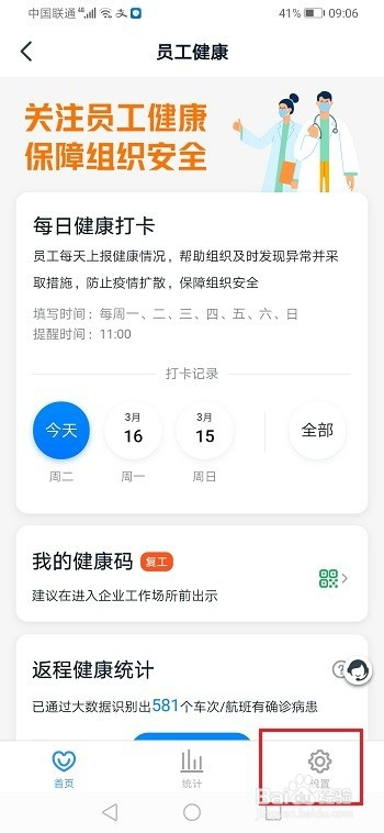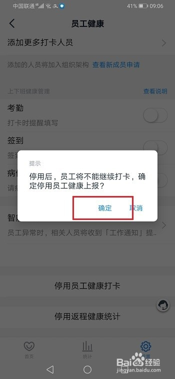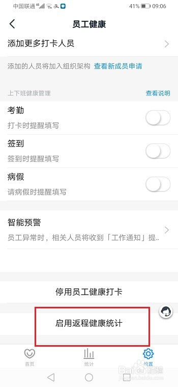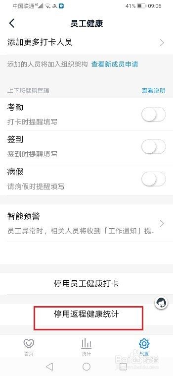 第三步进去设置界面之后,点击停用员工健康统计,如下图所示:
