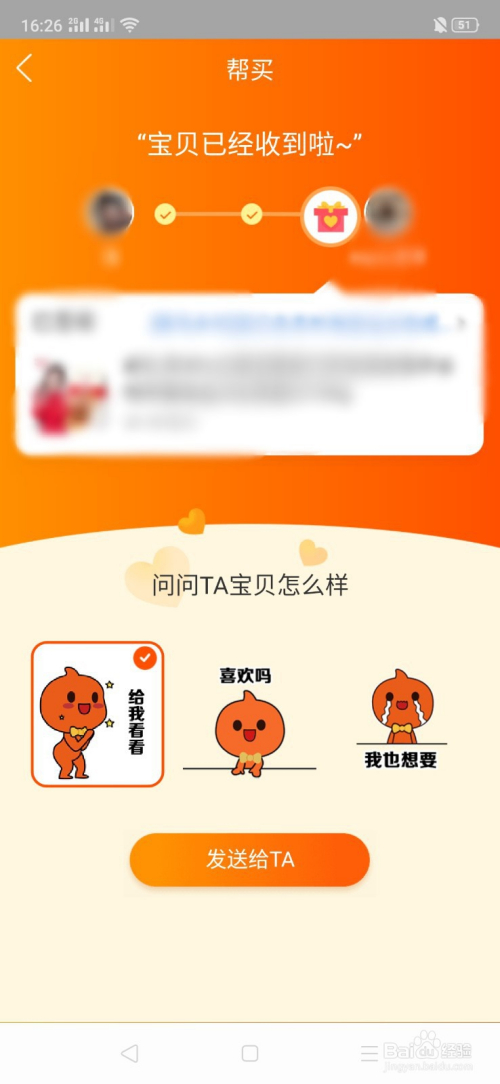 2.下单时,填了您淘宝老友的手机号,系统就会主动给对方发送帮买动静。