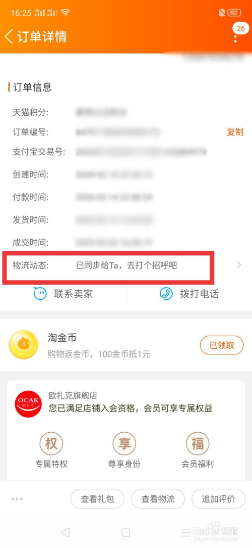 您去下单,填了您淘宝老友里的手机号,就可以看到物流动态也是同步的。