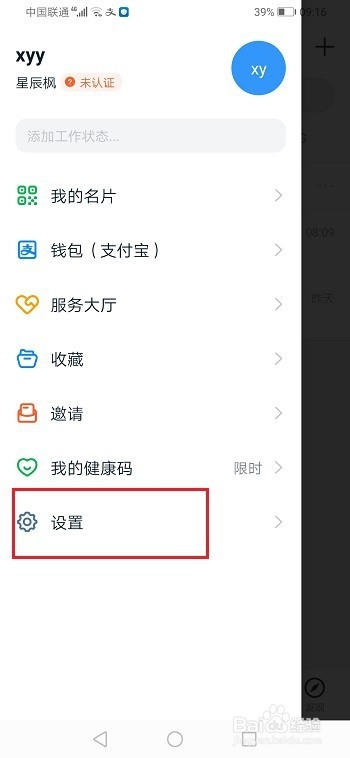 第三步打开钉钉侧边栏之后,点击设置,如下图所示: