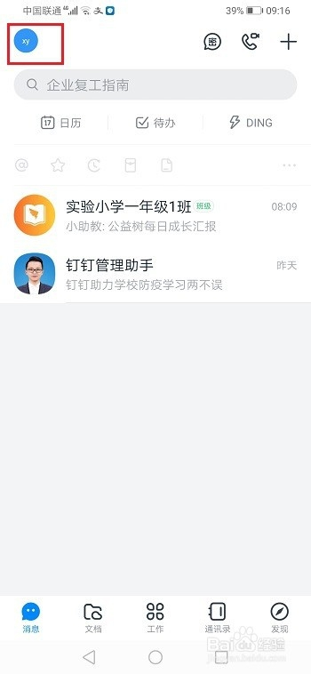 第二步下面我们来解决一向显示直播中的问题,打开钉钉,点击账号头像,如下图所示: