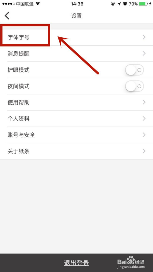 在设置页面,点击进入字体字号。
