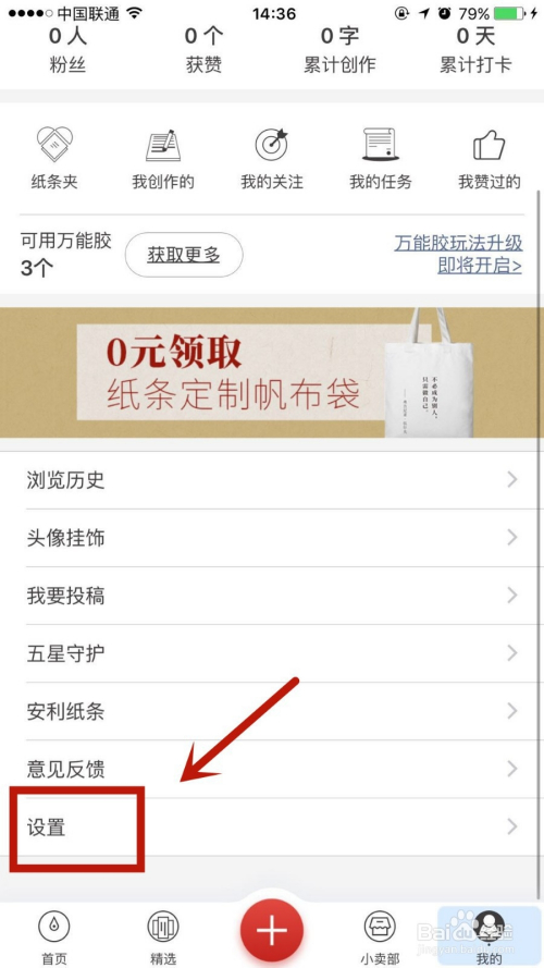 在我的页面,点击进入设置选项。