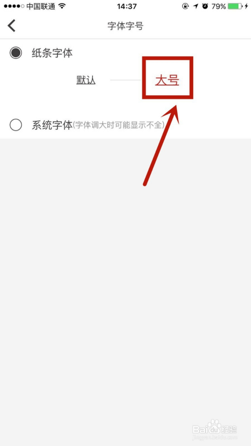 点击上纸条字体后的大号,即可。