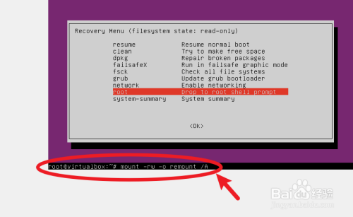 接下来选择“root Drop to root shell prompt ”;最下面按回车键进入代码输入,先输入一下本身的密码,进入编纂