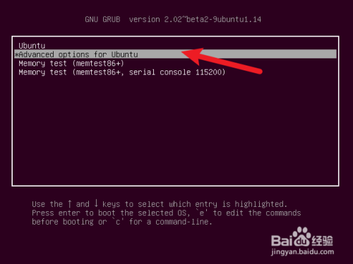 开机时按ESC键,选择“Ubuntu高级选项”;
