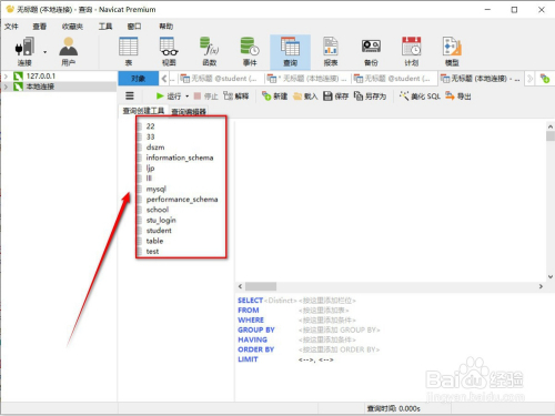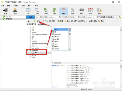 第四步,点击“查询建立东西”之后我们可以看到Navicat Premium的建立的全数表,,如下图