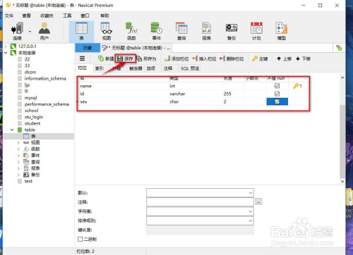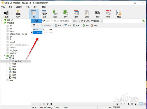 第九步,定名好表的属性值以及表名之后,我们就可以在当地毗连中的table数据库中打开我们的table_01,如下图