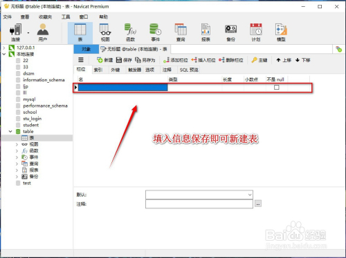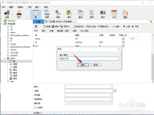 下面小编将建立一个table的数据库,点击保留确定即可建立一个新的数据库,如下图