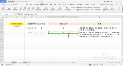 可以看到会弹出一个弹窗,里面有两个参数,别离是日期序号、返回类型。可以手动输入,也可以鼠标选中单位格的内容引用。