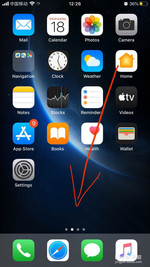 回到手机桌面,上划屏幕。